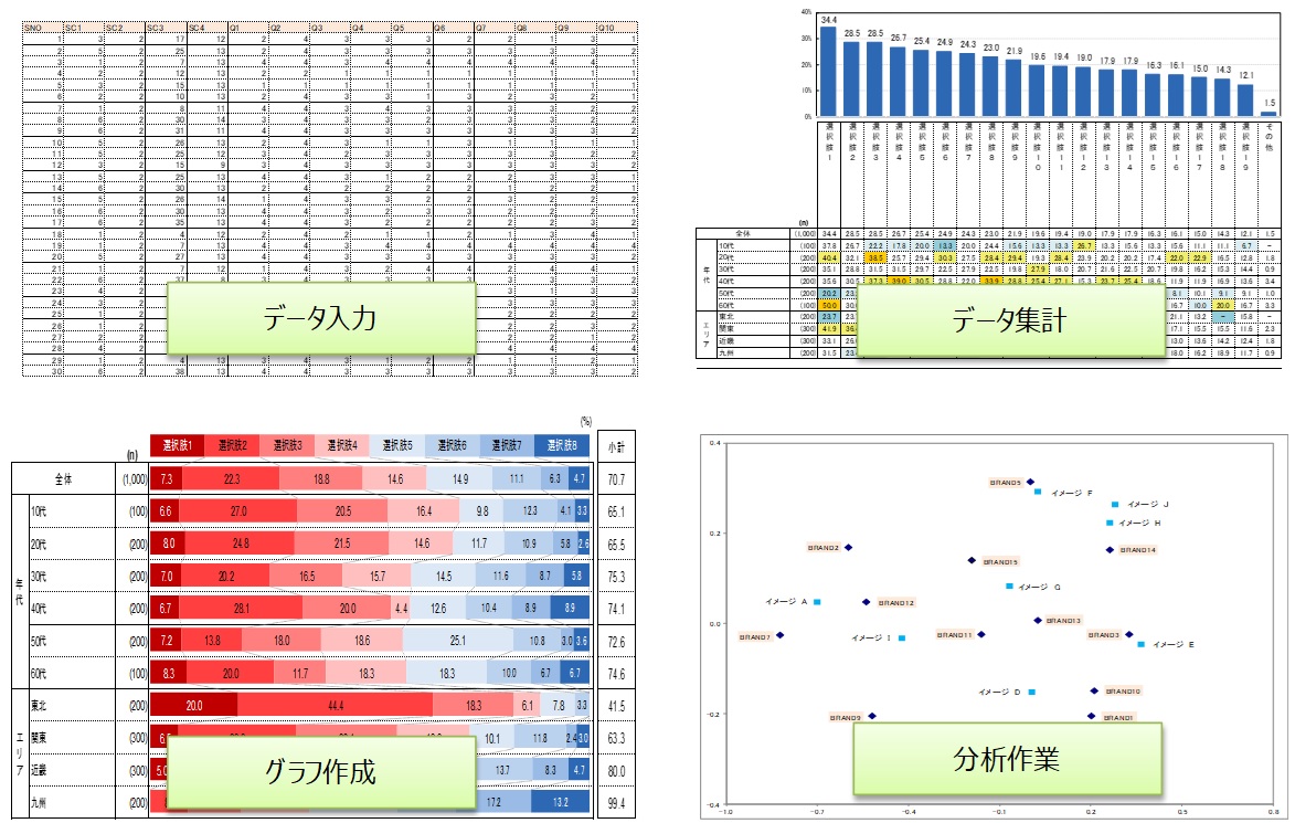 | 分析・多変量解析 | 各種、ご要望に応じた分析結果をご納品致します。 |